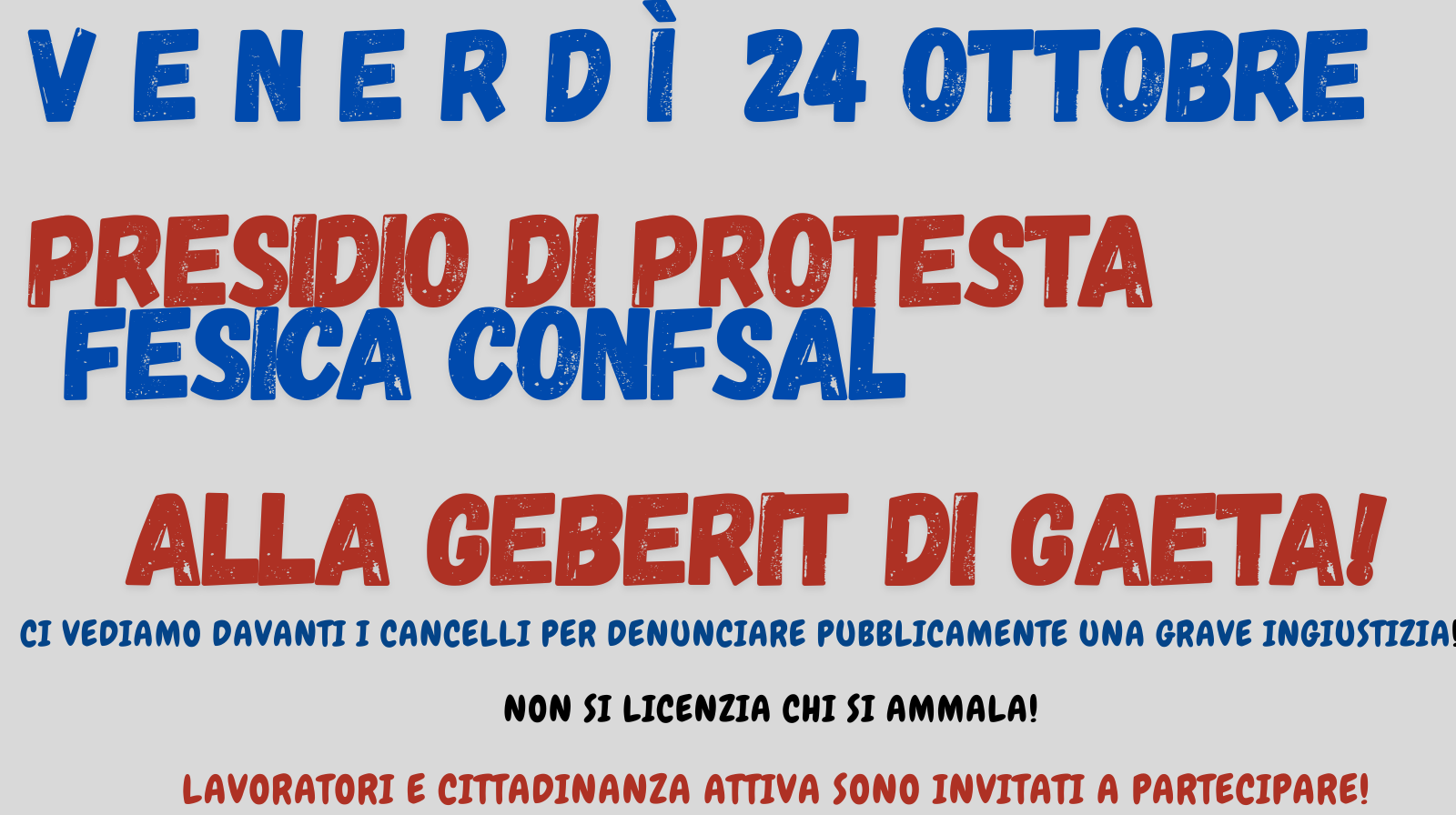 Lavoro. Venerdì 24 sit-in di protesta alla Geberit Gaeta: “Ci faremo sentire dopo un licenziamento ingiusto di un dipendente ammalato”