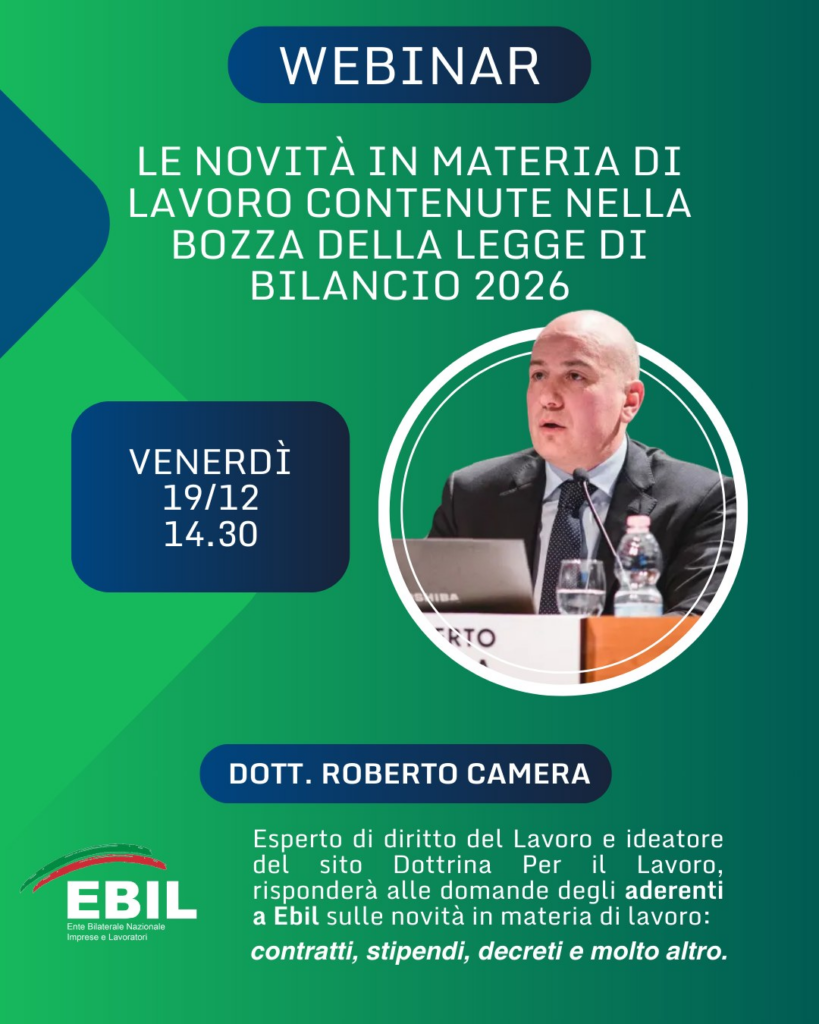 EBIL con il suo Presidente Alfredo Mancini, invita professionisti e imprese al webinar gratuito, sulle novità lavoristiche nella bozza della Legge di Bilancio 2026,